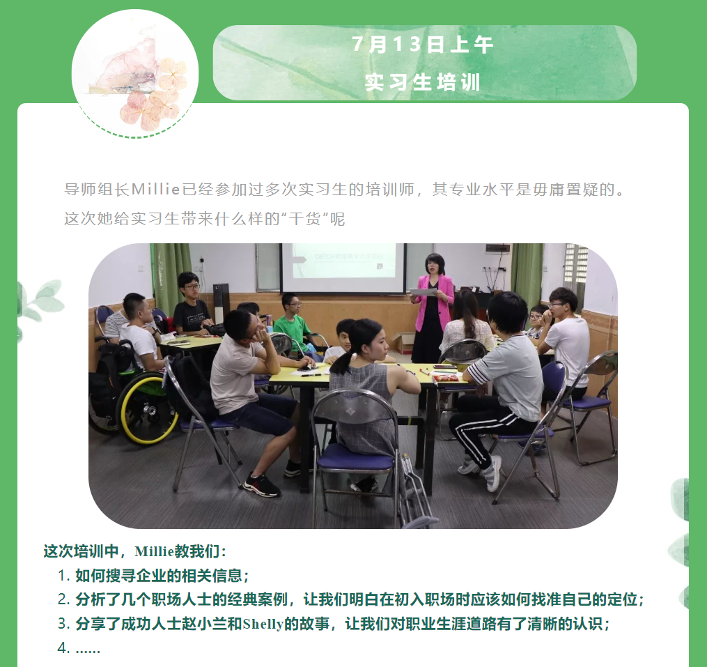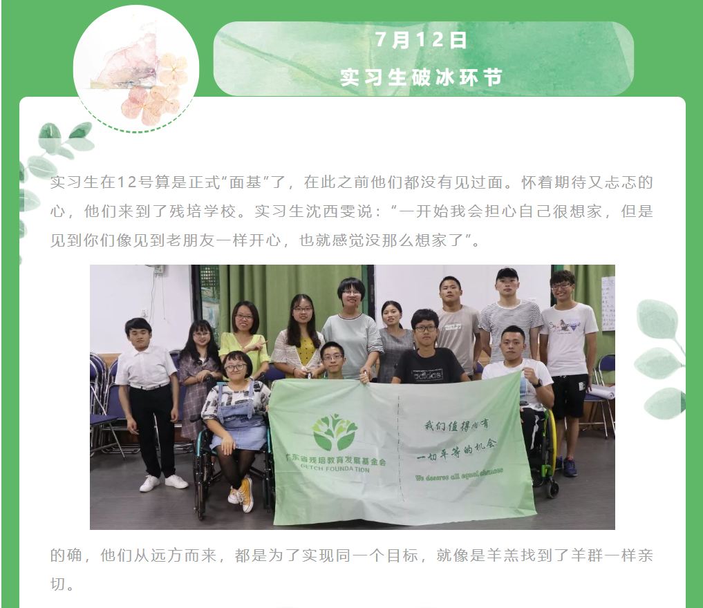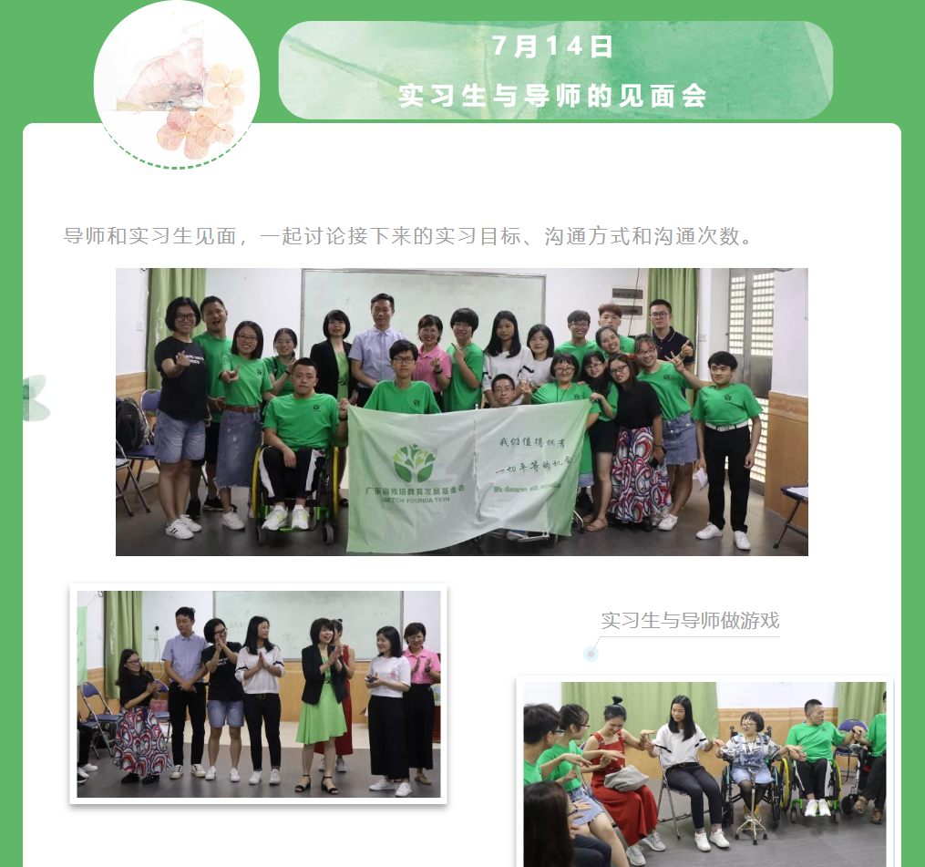 这个七月,或许你在家里一边吹着空调一边煲剧、或是来一场说走就走的旅行。而对于残障实习生来说,是忙碌的一个月。他们从远方来到广州,参加了沙面义卖、实习生培训、导师见面会等活动,在学习和锻炼中成长。现在,让我们一起来回顾这些精彩内容~