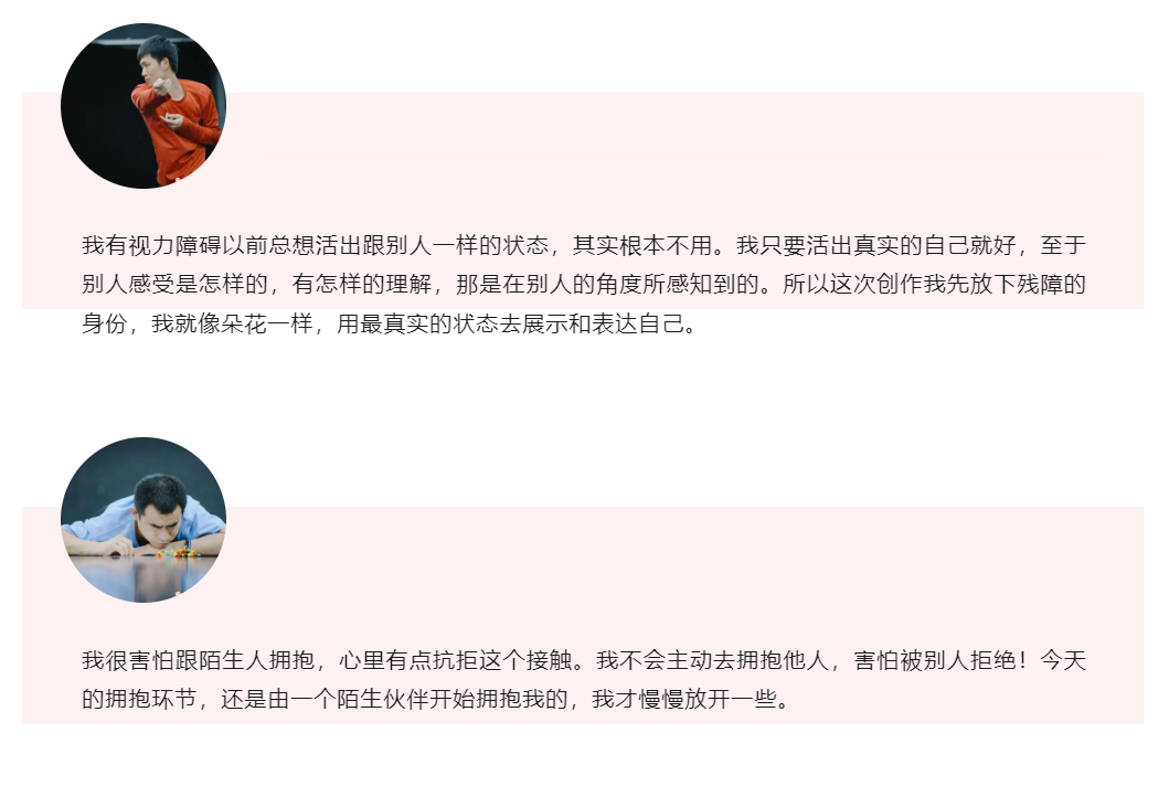 从日常生活中抽取可用的动作素材,加上节奏、速度与轻重的变化,成为个人独特的舞蹈语言。