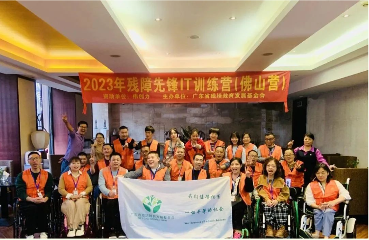 2023年2月18日, 由伟创力赞助,广东省残培教育发展基金会主办的《2023年残障先锋IT训练营--佛山营》正式开营,广东省残培教育发展基金会秘书长海蓝在开营仪式上致辞,希望学员更好地提升职业能力,获得职业发展,赢得职场竞争能力,获得可持续发展,融入美好社会生活。
